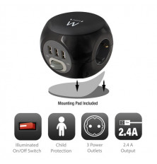 CARACTERÍSTICASUtilizar con: UniversalTipo de fuente de alimentación: InteriorVoltaje de entrada: 250 VColor del producto: NegroCorriente de entrada: 16 ACantidad de puertos USB: 3DESEMPEÑOConector USB: USB tipo ACorriente de salida USB: 2,4 AVoltaje de salida USB: 5 VCantidad de salidas AC: 3 salidas ACDISEÑOInterruptor de encendido/apagado integrado: SiPESO Y DIMENSIONESAncho: 92 mmProfundidad: 80 mmAltura: 92 mmLongitud de cable: 1,5 mPeso: 423 gEMPAQUETADOCantidad por paquete: 1 pieza(s)Ancho del paquete: 122 mmProfundidad del paquete: 110 mmAltura del paquete: 120 mmPeso del paquete: 485 gTipo de embalaje: Ampolla