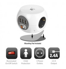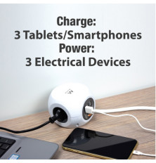 Con la unidad de alimentación Power Block EW3939 podrá conectar 3 dispositivos eléctricos y 3 dispositivos USB al mismo tiempo. Los puertos USB tienen una capacidad total de 2, 4A y incluyen protección contra subidas de tensión y cortocircuitos. Las tres salidas de alimentación están equipadas con protección para niños. Puede instalar la unidad Power Block en su escritorio. Utilice la almohadilla de montaje incluida para asegurarse de que el Power Block permanezca sujeto en su lugar. Active o desactive las 3 salidas de alimentación y puertos USB al mismo tiempo con el interruptor de encendido/apagado con iluminación.3 salidas de alimentación y 3 puertos USBLa toma de corriente cúbica EW3939 dispone de 3 salidas de alimentación para conectar 3 dispositivos. Los tres puertos USB son adecuados para cargar teléfonos inteligentes y tablets con una carga máxima de 2,4A a la vez.Habilite o deshabilite todas las salidas de alimentación y puertos USB con un solo interruptorUtilice el interruptor iluminado para habilitar o deshabilitar todas las salidas de alimentación simultáneamente. Esta característica es de gran utilidad para reducir su factura de electricidad Y para garantizar la seguridad. Evita que se utilice la energía de reserva. Es más seguro desactivar todos los dispositivos eléctricos a la vez, en lugar de tener todos los dispositivos activados todo el tiempo.Diseño compactoEl EW3939 tiene un diseño cúbico que ahorra espacio y ocupa un espacio limitado en su escritorio. Fácil acceso a todas las salidas de alimentación y puertos USB. La almohadilla de montaje incluida garantiza que la toma de corriente permanezca en su sitio.Protección frente a subidas de tensión, cortocircuitos y niñosLos puertos USB están equipados con protección frente a subidas de tensión y cortocircuitos. Las salidas de alimentación tienen protección de seguridad infantil.CARACTERÍSTICASLongitud de cable: 1,5 mCantidad de salidas AC: 3 salidas ACColocación soportada: InteriorInterruptor de encendido/apagado integrado: SiTipo de salida AC: Tipo CTipo de enchufe: Tipo CCantidad de puertos USB: 3Número de hilos: 3Tamaño del núcleo: 1,5 mm²Luz de indicación: SiColor del producto: BlancoCONTROL DE ENERGÍAVoltaje de entrada AC: 250 VPotencia máx. de entrada: 4000 WMáxima corriente: 16 APESO Y DIMENSIONESAncho: 92 mmProfundidad: 92 mmAltura: 80 mmPeso: 423 g