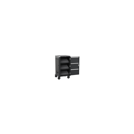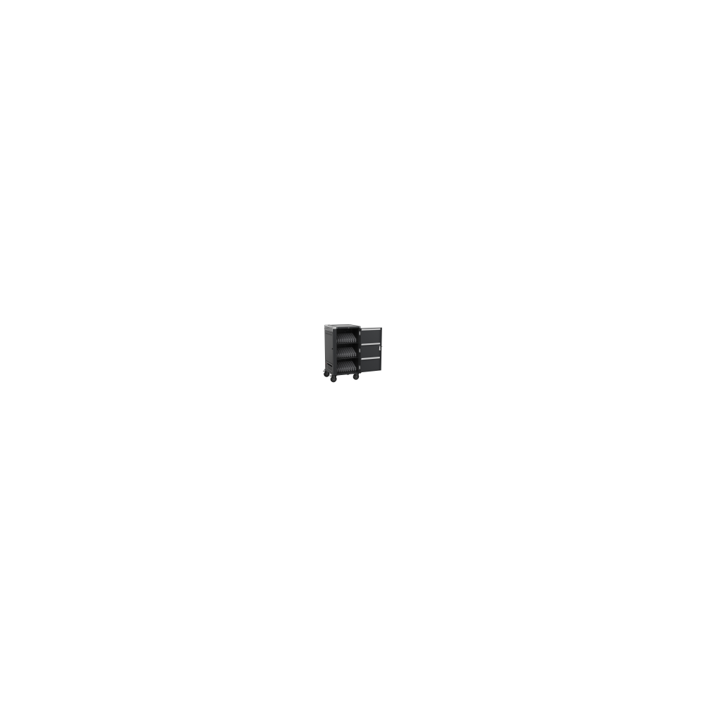 El carro de carga EW1700 le permite proteger, almacenar y cargar fácilmente hasta 30 dispositivos Tablets, Chromebook o portátiles con pantallas de hasta 17\". Cuenta con un sistema de carga inteligente, estantes con ranuras para dispositivos flexibles y duraderas, un sistema de administración de cables/fuente de alimentación y, lo mejor de todo, está completamente ensamblado para una implementación rápida. Además, cuenta con espacios numerados para dispositivos y sus correspondientes espacios para suministro de energía para optimizar la organización. El carro también cuenta con puertas ventiladas con un mecanismo de bloqueo con llave de 3 puntos y la opción de agregar su propio candado para mayor seguridad.