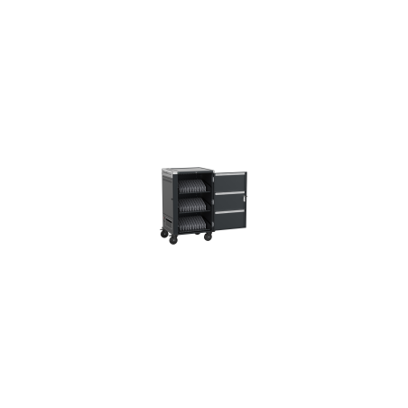 El carro de carga EW1701 le permite proteger, almacenar y cargar fácilmente hasta 36 dispositivos Tablets, Chromebook o portátiles con pantallas de hasta 15.6\". Cuenta con un sistema de carga inteligente, estantes con ranuras para dispositivos flexibles y duraderas, un sistema de administración de cables/fuente de alimentación y, lo mejor de todo, está completamente ensamblado para una implementación rápida. Además, cuenta con espacios numerados para dispositivos y sus correspondientes espacios para suministro de energía para optimizar la organización. El carro también cuenta con puertas ventiladas con un mecanismo de bloqueo con llave de 3 puntos y la opción de agregar su propio candado para mayor seguridad.