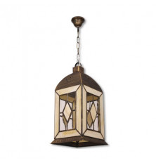 Farol colgante grande serie CALIFA de color ORO VIEJO/BEIS. Realizado en metal y cristal. Sus dimensiones, regulable en altura son de 85<,145x33x33 centímetros. Posee tres porta lámparas E27. Bombillas no incluidas. Es ideal para porches decorados con un estilo rústico o artesanal. En esta misma serie podemos encontrar a demás del aplique, plafones y colgantes de varios tamaños y todos a juego para crear una elegante composición en bodegones y hogares.