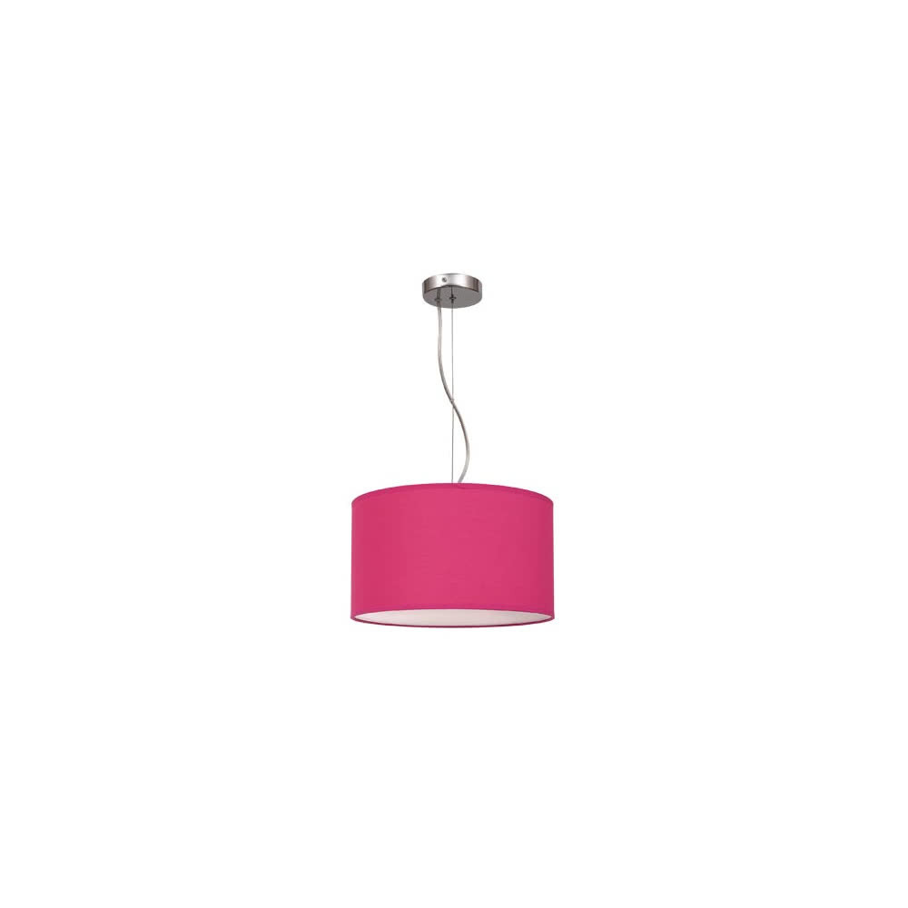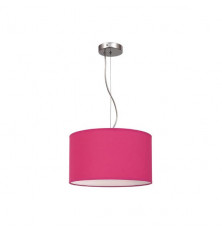 Colgante de la serie NICOLE en color rosa FUCSIA. Realizado en metal y material textil. Posee un porta lámparas E27. Bombilla no incluida. De altura regulable y 30 centímetros de diámetro.