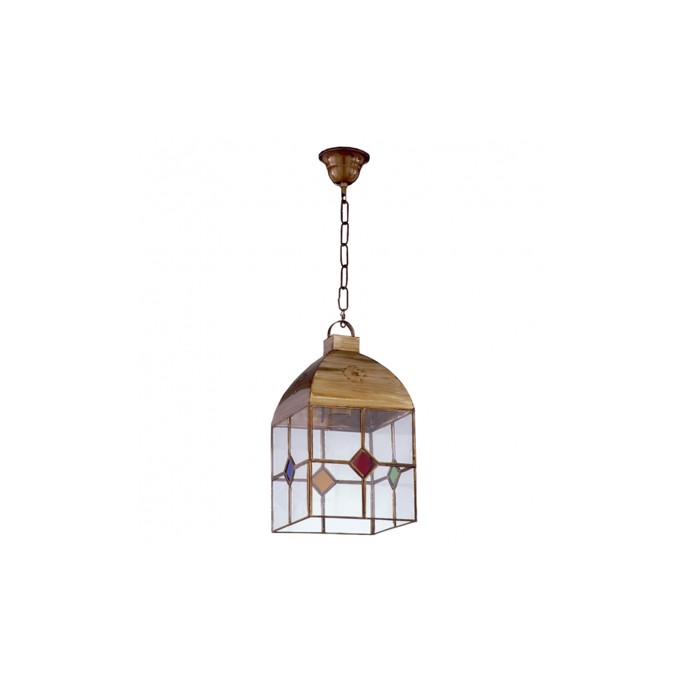 FAROL GRANADINO 4 CARAS GRANDE 1XE27 CUERO/COLORES REGX20X20 CM