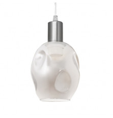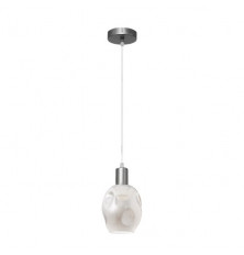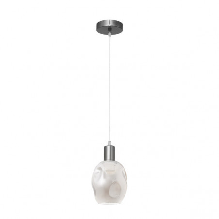 Colgante serie METEORO en color cromo/fumé. Realizado en cristal con cinco oquedades. Su altura es regulable y su diámetro es 16 cm. Portalámparas E27.