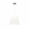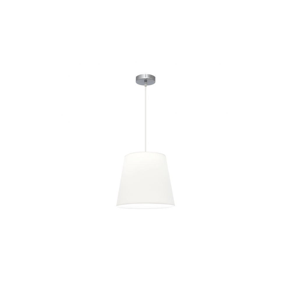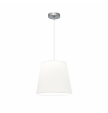 Colgante de la serie MALDIVAS en color CROMO/BLANCO. Realizado en textil y metal. Posee un porta lámparas E27. Bombilla no incluida. Tiene unas dimensiones, regulable en altura, de 45<,85x35x35 centímetros. En esta serie encontramos pie de salón, sobremesa y colgantes de 40 cm y 35 cm de diámetro, todos con combinaciones de colores con metales de color cromo, níquel, marrón, cuero y blanco, para elegir la que mejor se adapte a su decoración.