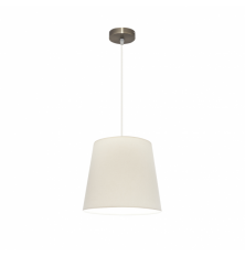 Colgante de la serie MALDIVAS en color CUERO/SANCHO. Realizado en textil y metal. Posee un porta lámparas E27. Bombilla no incluida. Tiene unas dimensiones, regulable en altura, de 45<,85x35x35 centímetros. En esta serie encontramos pie de salón, sobremesa y colgantes de 40 cm y 35 cm de diámetro, todos con combinaciones de colores con metales de color cromo, níquel, marrón, cuero y blanco, para elegir la que mejor se adapte a su decoración.