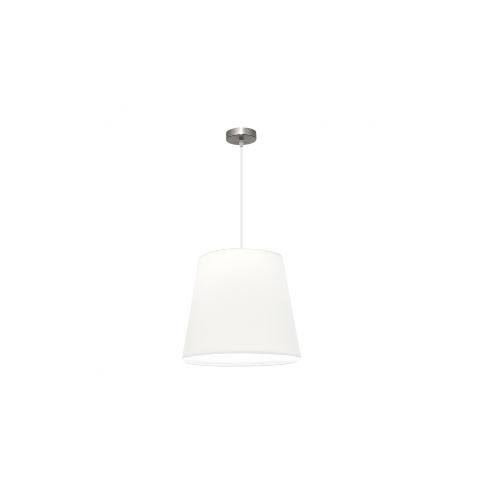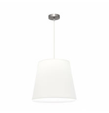 Colgante de la serie MALDIVAS en color NIQUEL/BLANCO. Realizado en textil y metal. Posee un porta lámparas E27. Bombilla no incluida. Tiene unas dimensiones, regulable en altura, de 50<,90x40x40 centímetros. En esta serie encontramos pie de salón, sobremesa y colgantes de 40 cm y 35 cm de diámetro, todos con combinaciones de colores con metales de color cromo, níquel, marrón, cuero y blanco, para elegir la que mejor se adapte a su decoración.