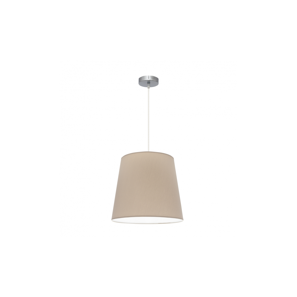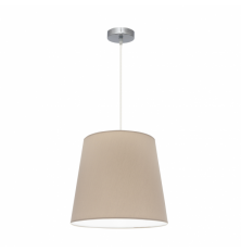 Colgante de la serie MALDIVAS en color CROMO/PIEDRA. Realizado en textil y metal. Posee un porta lámparas E27. Bombilla no incluida. Tiene unas dimensiones, regulable en altura, de 50<,90x40x40 centímetros. En esta serie encontramos pie de salón, sobremesa y colgantes de 40 cm y 35 cm de diámetro, todos con combinaciones de colores con metales de color cromo, níquel, cuero y blanco, para elegir la que mejor se adapte a su decoración.