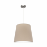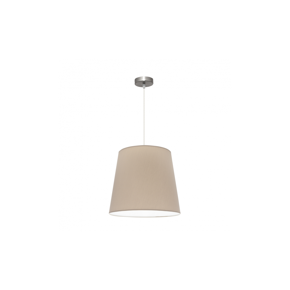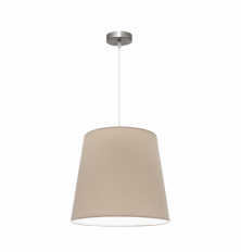 Colgante de la serie MALDIVAS en color NIQUEL/PIEDRA. Realizado en textil y metal. Posee un porta lámparas E27. Bombilla no incluida. Tiene unas dimensiones, regulable en altura, de 50<,90x40x40 centímetros. En esta serie encontramos pie de salón, sobremesa y colgantes de 40 cm y 35 cm de diámetro, todos con combinaciones de colores con metales de color cromo, níquel, cuero y blanco, para elegir la que mejor se adapte a su decoración.