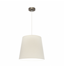 Colgante de la serie MALDIVAS en color CUERO/SANCHO. Realizado en textil y metal. Posee un porta lámparas E27. Bombilla no incluida. Tiene unas dimensiones, regulable en altura, de 50<,90x40x40 centímetros. En esta serie encontramos pie de salón, sobremesa y colgantes de 40 cm y 35 cm de diámetro, todos con combinaciones de colores con metales de color cromo, níquel, cuero y blanco, para elegir la que mejor se adapte a su decoración.