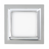 Downlight cuadrado de empotrar modelo VENTURA en color cromo. Tiene una potencia de luz de 9 watios, 720 lúmenes y 3000K. Su medida es de 12X12X1,5 centímetros y la de corte es 10,5x10,5 centímetros. Peso neto, 225 gramos..