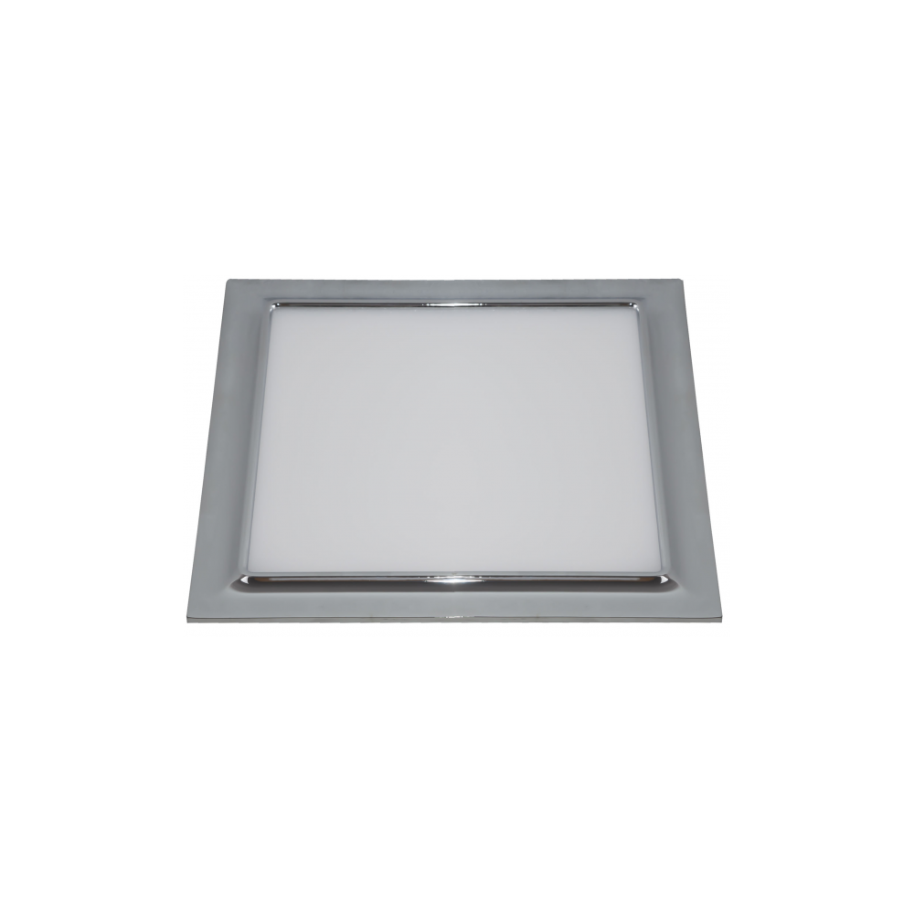 Downlight modelo VENTURA en color cromo. Tiene una potencia de luz de 20 watios, 1600 lúmenes y 3000K. Su medida es de 21,5X21,5X1,5 centímetros y la de corte es 20x20 centímetros. Su peso neto es de 595 gramos.