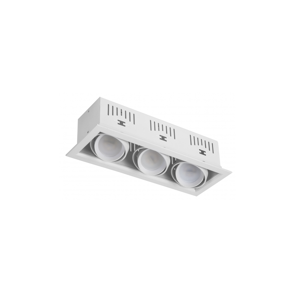 Foco de empotrar de tres luces KARDAN AUGUSTO, realizado en aluminio color blanco. Tiene unas medidas de 11X30X12 centímetros y un peso neto de 675 gramos. Portalámpara GU10 (BOMBILLAS NO INCLUIDAS).