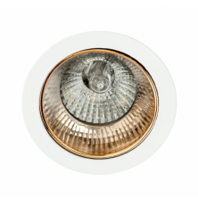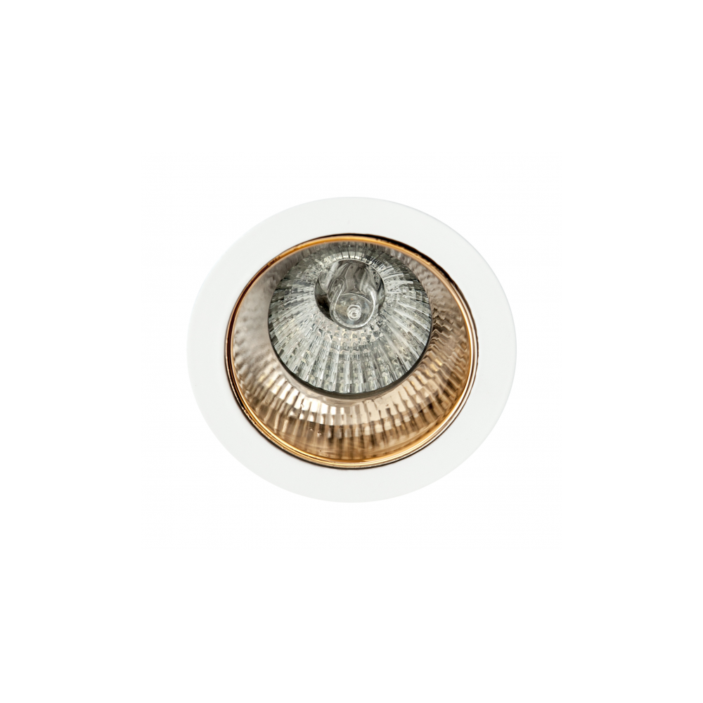 Empotrable redondo orientable ALFABETO, realizado en aluminio color oro/blanco. Tiene unas medidas de 8X8X3,5 y un peso neto de 65 gramos. Portalámparas GU10.