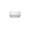Pantalla de la serie KENYA en color BLANCO/GRIS. Realizada en material textil. Formada por dos pantallas de distinto color y textura. Diseñada para cogida con E27, ideal para Pies de Salón y colgantes. Tiene unas dimensiones de 40x38x22 centímetros. Disponibles en esta serie pantallas de 14, 18, 40 y 50 centímetros de diámetro, tanto en la combinación gris/blanco como en blanco/gris.
