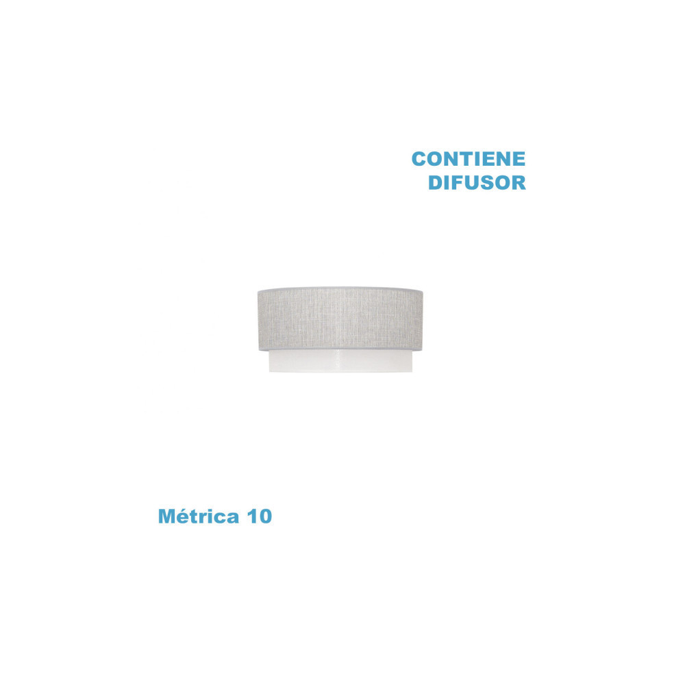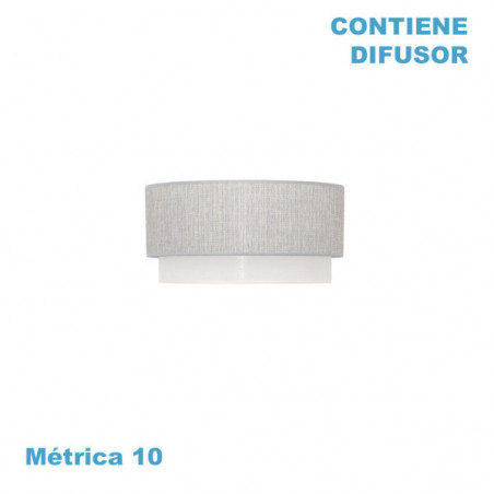 Pantalla de la serie KENYA en color GRIS/BLANCO. Realizada en material textil. Formada por dos pantallas de distinto color y textura, con DIFUSOR INCLUIDO. Diseñada para cogida con METRICA 10. Tiene unas dimensiones de 40x38x22 centímetros. Disponibles en esta serie pantallas de 14, 18, 40 y 50 centímetros de diámetro, tanto en la combinación gris/blanco como en blanco/gris.