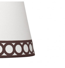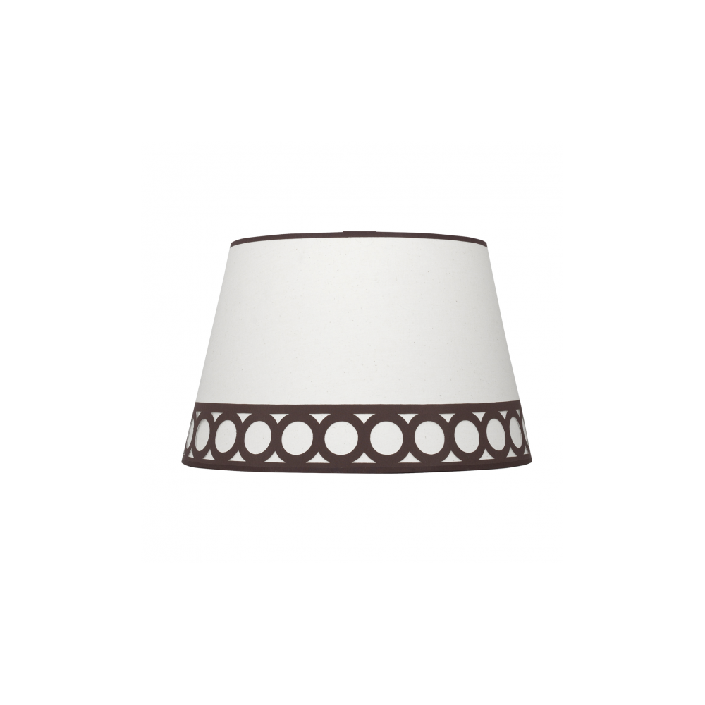 Pantalla cónica abierta de la serie DALIA de color BEIS/MARRON. Diseñada para cogida a un portalámparas E14. Está realizado en metal y material textil, con cenefa decorativa de motivos circulares, ideal para sobremesas y decorar en dormitorios, salas de estar, salones y comedores. Tiene unas dimensiones de 25x20x15 centímetros. En esta serie encontramos las pantallas de 40, 25 y 15 centímetros de diámetro, y combinadas en blanco/oro, en blanco/plata ó en beis/marrón.