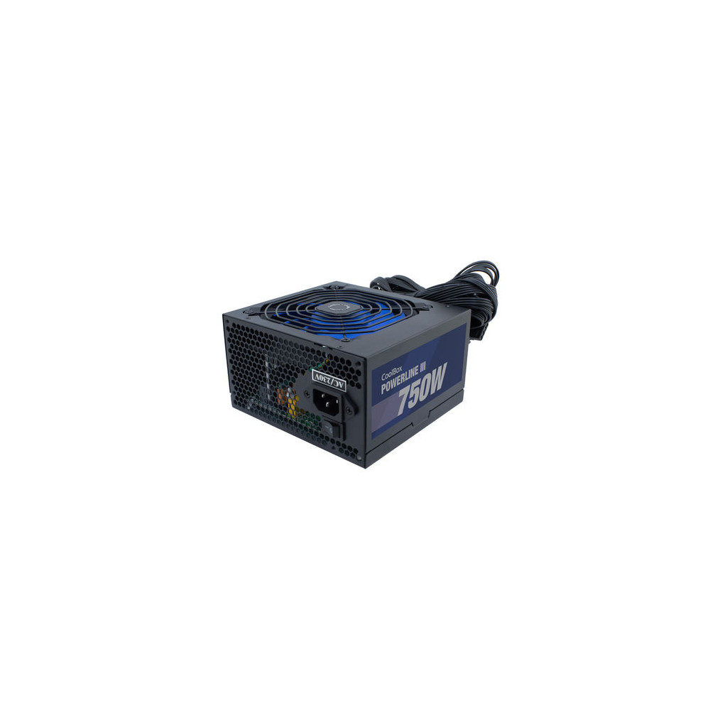 Potencia máxima: 750W|Rail único de 12V para un mejor suministro de potencia|Tecnología de conversión DC-DC para una máxima eficiencia y estabilidad|Eficiencia eléctrica máxima del 85%|Ventilador termorregulado de 120mm y baja velocidad para un funcionamiento silencioso|Gran nivel de protección (UVP, OVP, OPP, SCP)|Cableado plano de gran longitud|4 conectores de alimentación SATA, 2 Molex-HDD y 2 PCI-e de 6+2 pines\'\'CONTROL DE ENERGÍAPotencia total: 750 WVoltaje de entrada AC: 207 - 253 VFrecuencia de entrada AC: 47 - 63 HzCorriente de entrada: 6 AFactor de poder: 0,9Corrección del factor de potencia tipo (PFC): ActivoPotencia combinada (3,3 V): 200 WPotencia combinada (+12 V): 600 WPotencia combinada (+5 V): 200 WPotencia combinada (-12V): 6 WPotencia combinada (+5 VSB): 12,5 WCorriente máxima de salida (+3.3V): 25 ACorriente máxima de salida (+12V): 50 ACorriente máxima de salida (+5V): 25 ACorriente máxima de salida (-12V): 0,5 ACorriente máxima de salida (+5Vsb): 2,5 ATiempo de espera: 16 msEficiencia: 85%Margen de retardo de la señal Power Good: 100 - 500 msFunciones de protección de poder: Sobretensión, Sobrevoltaje, Cortocircuito, Bajo voltajePUERTOS E INTERFACESAlimentador de energía para tarjeta madre: 20+4 pin ATXConectores de poder (4 pin) periferales (Molex): 2Número de conectores de energía SATA: 6Conectores de poder PCI Express (6 + 2 pin): 2CPU conector de alimentación (4 +4 pines): SiConector de poder ATX (20 + 4 pin): SiDESEMPEÑOUtilizar con: PCFactor de forma de fuente de alimentación (PSU): ATXTiempo medio entre fallos: 60000 hDISEÑOColor del producto: NegroTipo de enfriamiento: ActivoDiámetro de ventilador: 12 cmNúmero de ventiladores: 1 Ventilador(es)Velocidad de ventilador: 690 - 1760 RPMUbicación de ventilador: SuperiorInterruptor de encendido/apagado integrado: SiCONDICIONES AMBIENTALESIntervalo de temperatura operativa: 0 - 50 °CIntervalo de humedad relativa para funcionamiento: 20 - 90%PESO Y DIMENSIONESAncho: 150 mmProfundidad: 140 mmAltura: 86 mmPeso: 1,23 kg