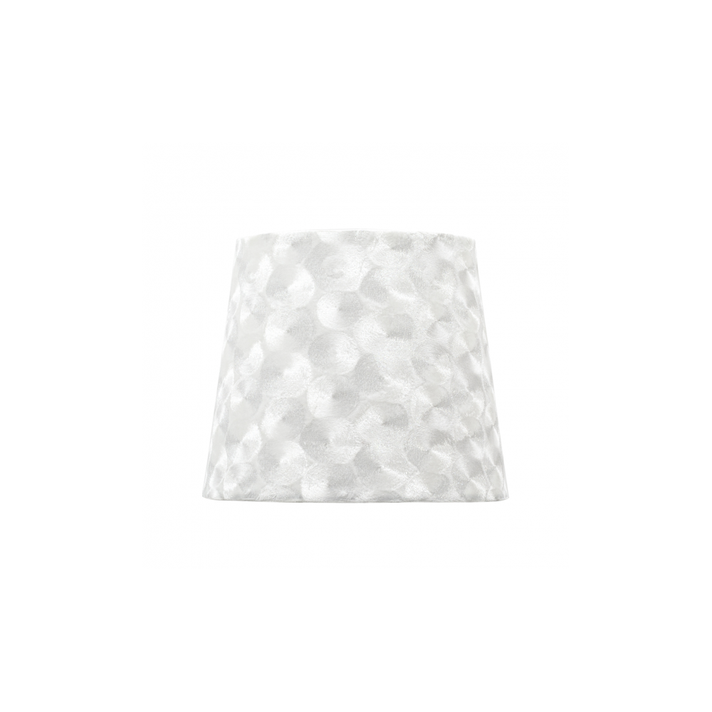 Pantalla serie Fátima de color blanco. Su textura es suave aunque el efecto es nacarado. Posee un portalámparas E27 y está realizada en material textil. Su medida es 30dx15dx20h cm y está disponible en varios tamaños.