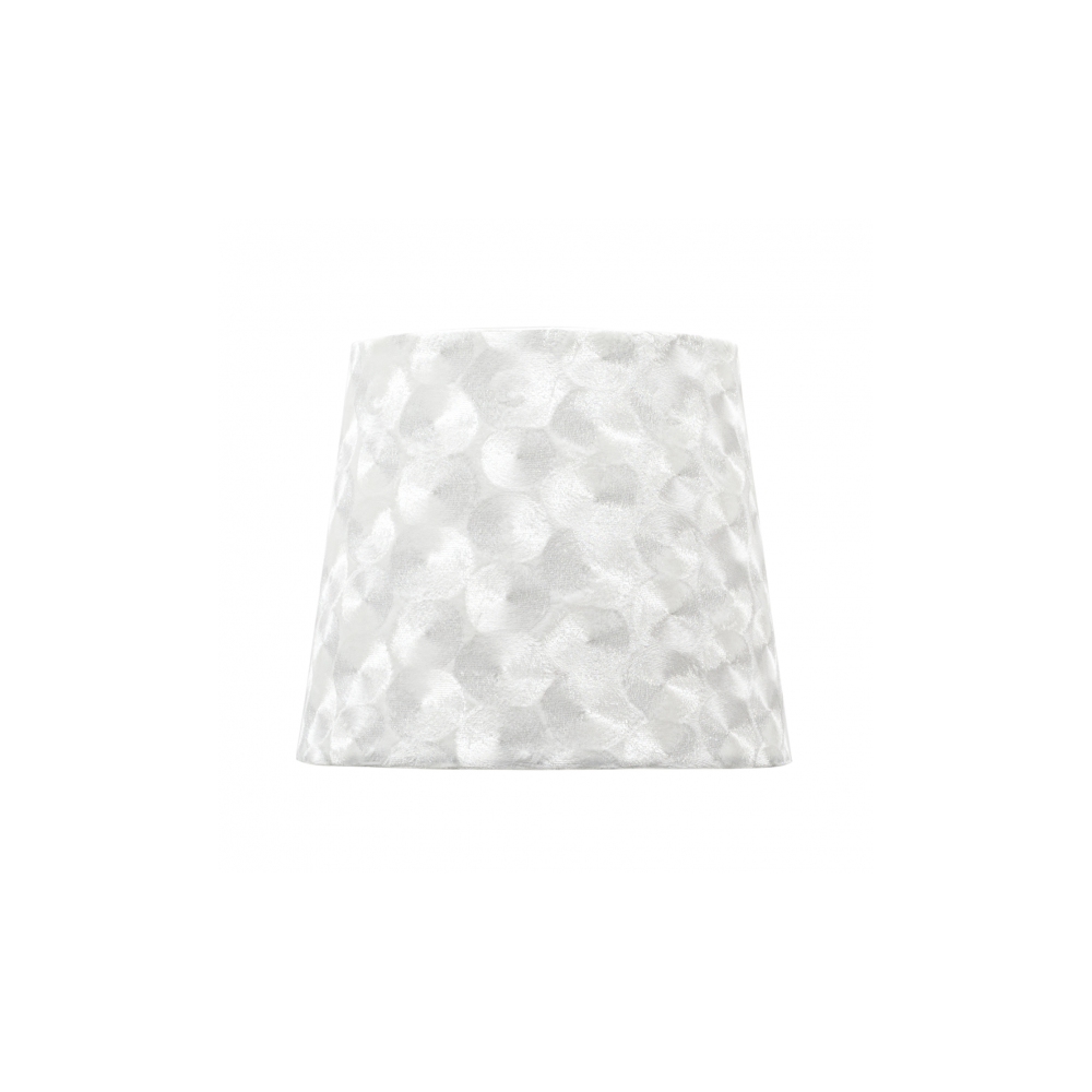 Pantalla serie Fátima de color blanco. Su textura es suave aunque emula al efecto nacarado. Posee un portalámparas E27 y está realizada en material textil. Sus dimensiones son 35dx18dx23h cm. Disponible en varios tamaños.