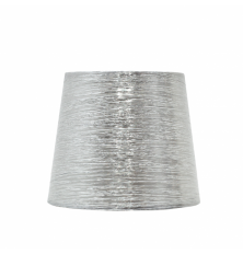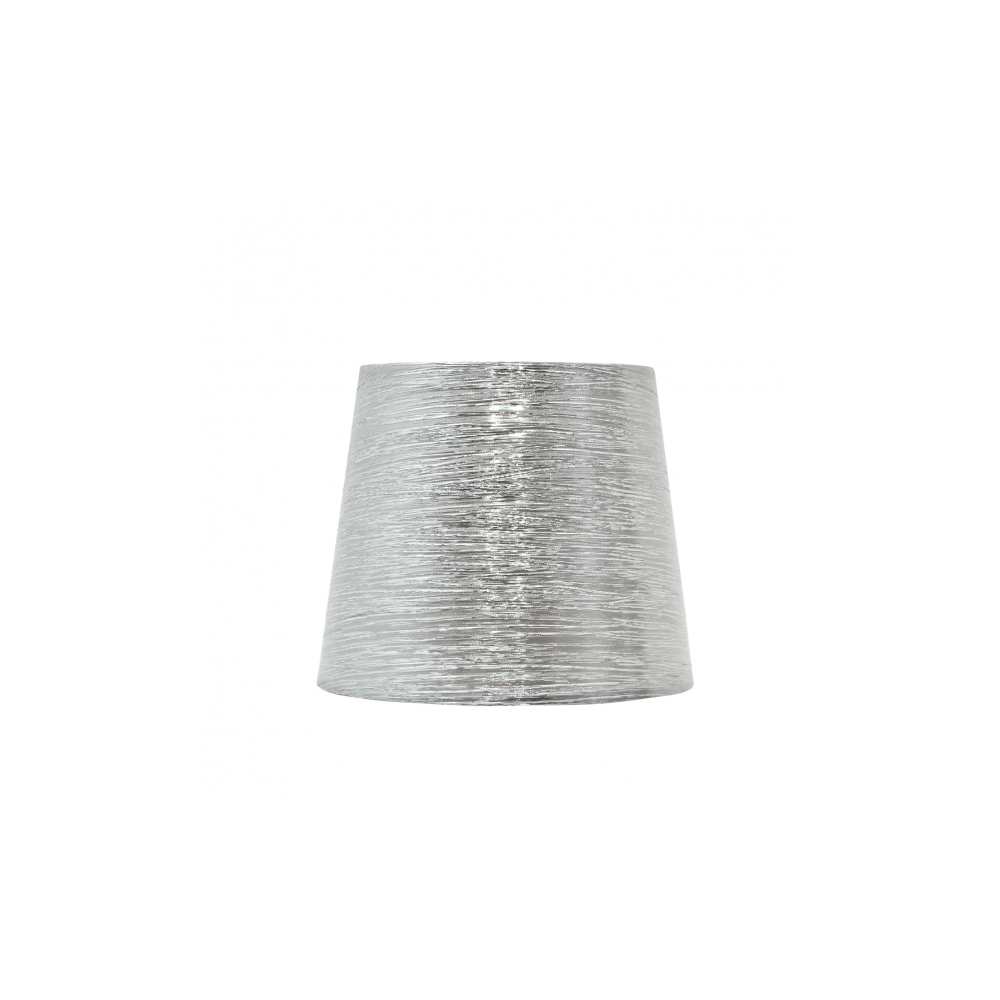 Pantalla serie Nova de color plata brillo. Se caracteriza por una decoración de hilos plateados que crean un juego de brillos y luces muy especial. Sus dimensiones son 20dx10dx16h. La puede encontrar también en los formatos de 45, 40, 35, 30, 25 y 15 cm y combinar con un armazón en color cromo o níquel.