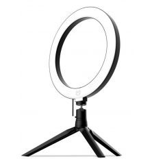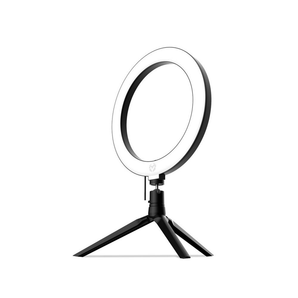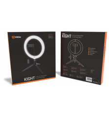 Con una buena calidad de iluminación, gracias a materiales de fabricación premium, su reducido tamaño y su diseño lo hacen un aro de luz muy versátil perfecto para mejorar la calidad de tu contenido. Graba vídeos y realiza fotografías tipo selfie de una manera profesional Krom Kight, un completo aro de luz LED que posee tres tonalidades y diez modos de brillo. Iluminación uniforme El aro LED de 25 cm de diámetro ofrece una iluminación de calidad, natural, ideal para generar todo tipo de contenido, como realizar streaming, grabar vídeos de maquillaje o videoconferencias. La luz del aro está compuesta de 120 bombillas LED, distribuidas a lo largo de toda la circunferencia, lo que permite brindar una luz homogénea. Además, mediante la rótula de bola, podrás disfrutar de un ángulo de rotación de 360º. Grabar contenido para redes sociales como YouTube, Tik Tok o Instagram, así como realizar videollamadas o streaming no había sido nunca antes tan fácil. Múltiples tonos y modos de brillo Podrás elegir entre tres potentes modos de luz: blanco frío, blanco cálido o amarillo cálido, siendo un aro de luz perfecto para interior o exterior. Además, cuenta con diez modos de brillo ajustables con tan solo pulsar un botón. Este aro de luz posee una temperatura de color con un rango de 2200K - 5500K, pudiendo iluminar un ambiente oscuro de manera fácil, con tan solo regular la intensidad a través del control de iluminación integrado en el cable. Trípode de mesa Con un reducido tamaño, Krom Kight incluye un trípode de mesa perfecto que permite colocarlo cómodamente y utilizarlo también como lámpara, como soporte de móvil en el escritorio o como luz ambiente. Las patas del trípode tienen gomas antideslizantes para garantizar la estabilidad. Con una robusta estructura de ABS de alta calidad, este aro también puede ser utilizado sin el trípode o sin la estructura del móvil, lo cual facilita otros usos. Alta compatibilidad Muy fácil de montar, Krom Kight es compatible con los smartphones, webcam y videocámara y se conecta a cualquier dispositivo a través de USB, incluyendo el cable conector. Soporte flexible para smartphone. Gracias a una abrazadera universal, podrás colocar el móvil en el centro del haz circular. Además, podrás poner el smartphone de manera vertical u horizontal según necesites. - Tres modos de luz: blanco frío, blanco cálido o amarillo cálido que abarcan un rango de temperatura de color entre 2200K - 5500K - Abrazadera universal en el centro para colocar el móvil de manera vertical u horizontal, según necesites - Lámpara de 25 cm diámetro iluminada por 120 bombillas LED distribuidas a lo largo de toda la circunferencia - Rótula de bola con un ángulo de rotación de 360º - Control de iluminación integrado en el cable - Trípode de mesa con gomas antideslizantes para una perfecta estabilidad