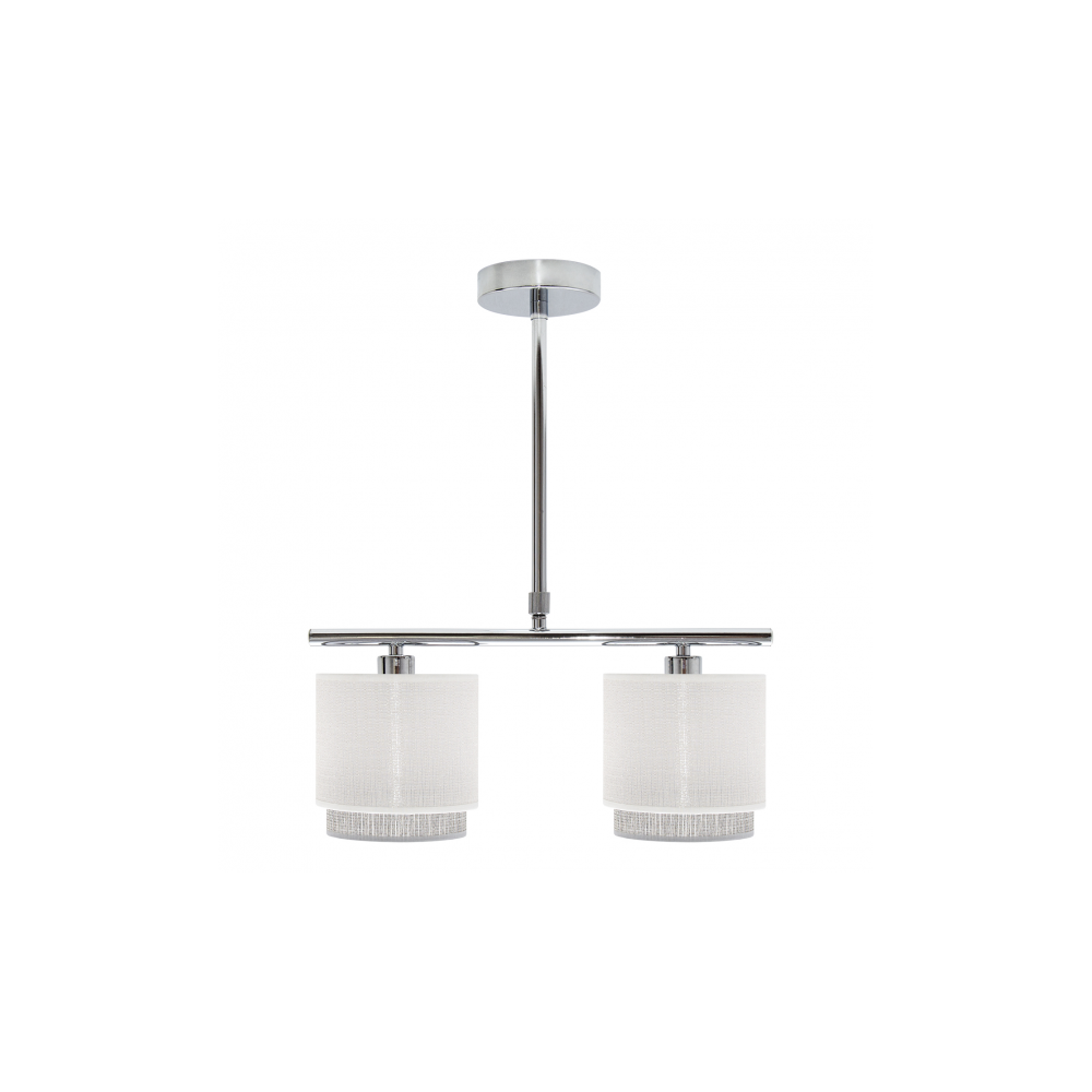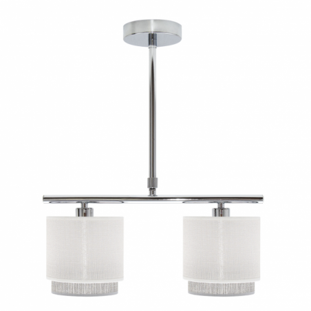 Lámpara de dos luces de la serie KENYA en color BLANCO/GRIS. Posee dos porta lámparas E14. Bombillas no incluidas. Tiene unas dimensiones, regulables en altura, de 50<,70x40x14 centímetros. Puede combinarlo con el colgante de 40 cm, colgante de 50 cm, lámpara de tres y cuatro luces, el sobremesa y el pie de salón, tanto en la combinación gris/blanco como en blanco/gris.