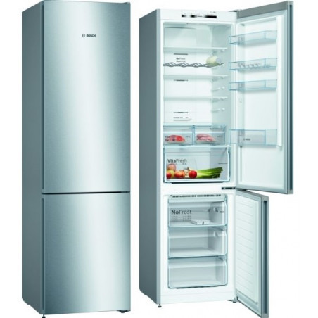 FRIGORIFICO BOSCH COMBI 203 x 60 N-FROST CLASE-D INOX TIRADOR VERTICAL INTEGRADO ACERO ANTIHUELLAS