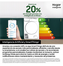 SECADORA SAMSUNG 9 KG CLASE-C BOMBA DE CALOR Inteligencia Artificial y SmartThings OPTIMALDRY HYGIENE CARE