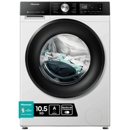 LAVADORA HISENSE 10,5 KG CLASE-A 1400RPM ,INVERTER DISPLAY FONDO 59 CM BLANCA A-20 CONECTIVIDAD WIFI SMART PA