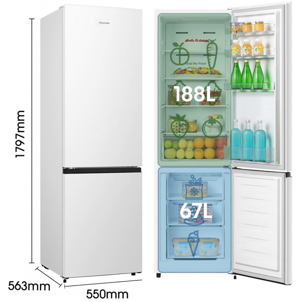 FRIGORIFICO HISENSE COMBI 179,7 x 55 x 56,3 cm CLASE-E 255 L. NO FROST BLANCO