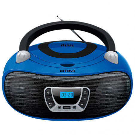 REPRODUCTOR CD/MP3 INFINITON MPCD-BT94 - AZUL, BLUETOOTH, USB, AUX, RADIO FM