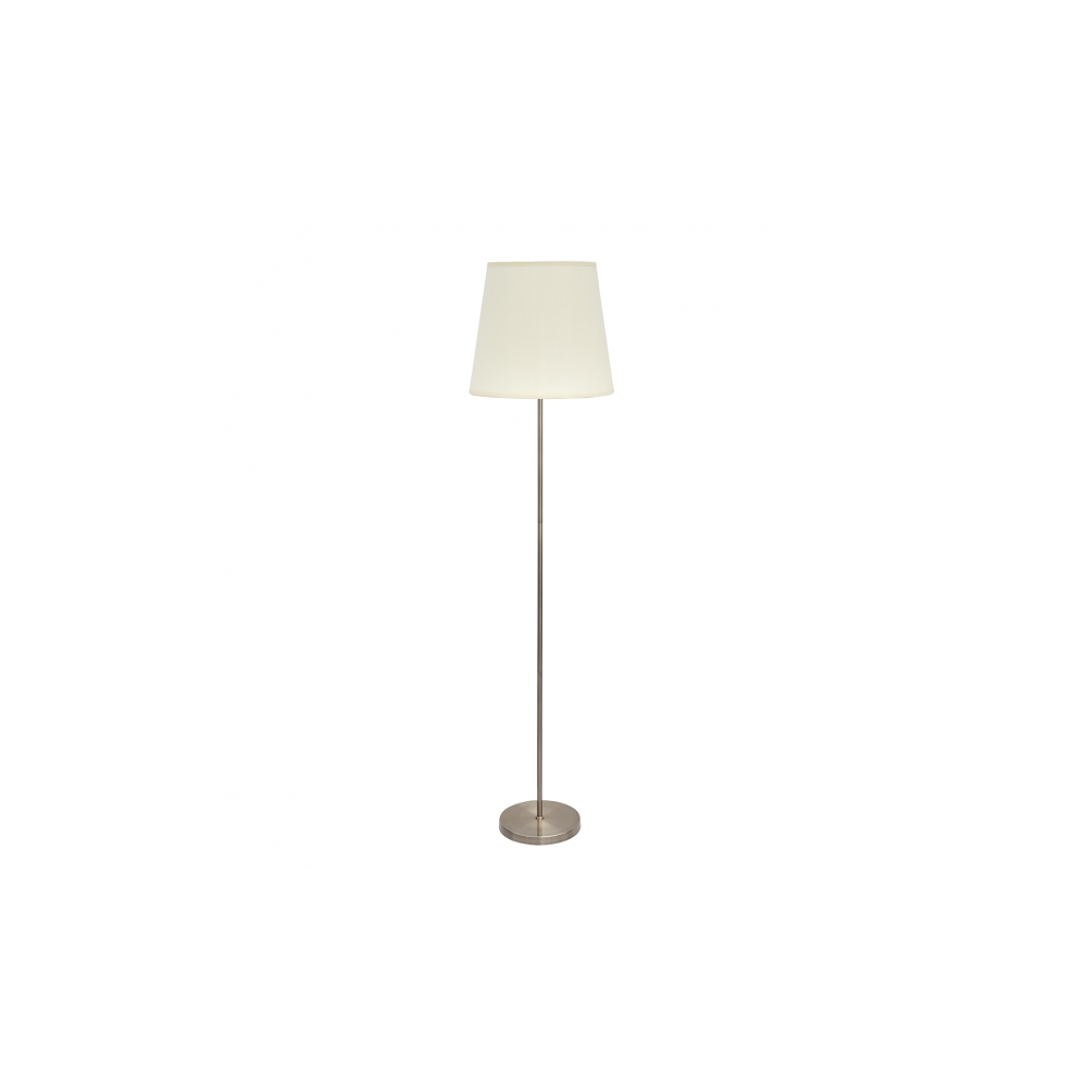 Pie de salón de la serie MALDIVAS en color CUERO/BEIS. Realizado en textil y metal. Posee un porta lámparas E27. Bombilla no incluida. Tiene unas dimensiones de 175x40x40 centímetros. En esta serie encontramos pie de salón, sobremesa y colgantes de 40 cm y 35 cm de diámetro, todos con combinaciones de colores con metales de color cromo, níquel, marrón, cuero y blanco, para elegir la que mejor se adapte a su decoración.