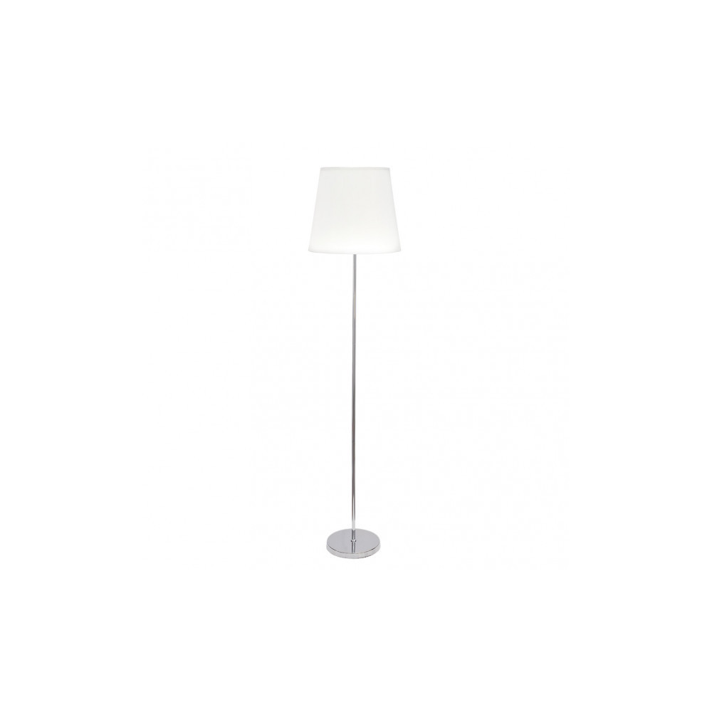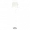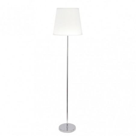 Pie de salón de la serie MALDIVAS en color CROMO/BLANCO. Realizado en textil y metal. Posee un porta lámparas E27. Bombilla no incluida. Tiene unas dimensiones de 175x40x40 centímetros. En esta serie encontramos pie de salón, sobremesa y colgantes de 40 cm y 35 cm de diámetro, todos con combinaciones de colores con metales de color cromo, níquel, marrón, cuero y blanco, para elegir la que mejor se adapte a su decoración.