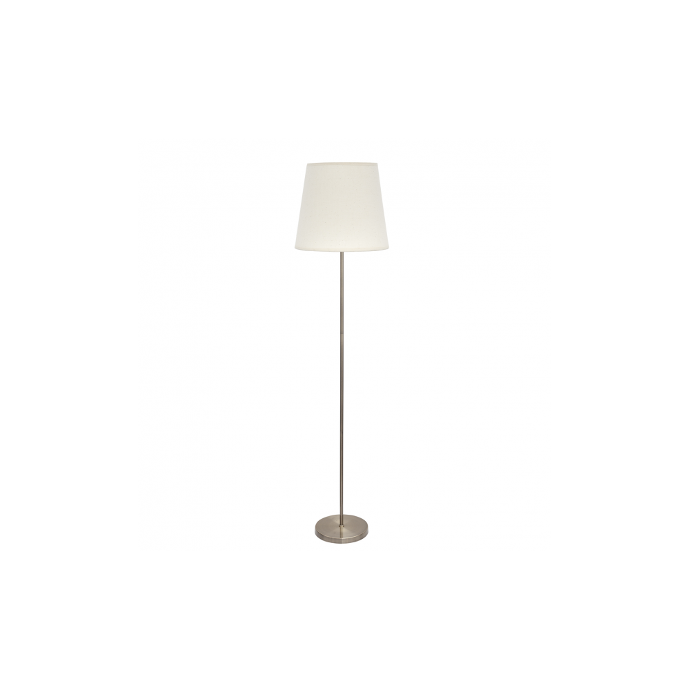 Pie de salón de la serie MALDIVAS en color CUERO/SANCHO. Realizado en textil y metal. Posee un porta lámparas E27. Bombilla no incluida. Tiene unas dimensiones de 175x40x40 centímetros. En esta serie encontramos pie de salón, sobremesa y colgantes de 40 cm y 35 cm de diámetro, todos con combinaciones de colores con metales de color cromo, níquel, marrón, cuero y blanco, para elegir la que mejor se adapte a su decoración.