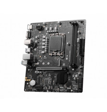 La serie PRO ayuda a los usuarios a trabajar de manera más inteligente al brindar una experiencia eficiente y productiva. Con una funcionalidad estable y un ensamblaje de alta calidad, las placas base de la serie PRO brindan no solo flujos de trabajo profesionales optimizados, sino también menos resolución de problemas y longevidad.-Totalmente controlable en bios y softwareLas placas base MSI te permiten administrar velocidades y temperaturas para todos los ventiladores de tu sistema y CPU. Total Fan Control le permite verificar las características principales de su sistema en una interfaz gráfica simplificada. También puede configurar hasta 4 objetivos de temperatura para la CPU y la placa base, que ajustarán las velocidades del ventilador automáticamente.-Almacenamiento rápido y preparado para el futuroLas placas base de la serie MSI PRO son compatibles con los últimos estándares de almacenamiento, lo que permite a los usuarios conectar cualquier dispositivo de almacenamiento ultrarrápido. Una mayor eficiencia hace que su trabajo sea más fácil.-Lightning Gen 4 PCI-EMSI lightning Gen 4 PCI-E es la última y más rápida solución de transferencia de datos PCI-E con 64 GB/s de ancho de banda de transferencia que se ha duplicado en comparación con su generación anterior. PCIe 4.0 mantiene la compatibilidad tanto hacia atrás como hacia adelante con especificaciones más antiguas y más nuevas. Optimizadas con un diseño de armadura de acero, sus placas base pueden soportar el peso de tarjetas gráficas pesadas.Características -Admite procesadores Intel® Core™, Pentium® Gold y Celeron® de 12.ª y 13.ª generación para socket LGA 1700. -Soporta memoria DDR4, hasta 3200 MHz (máx.). -Core Boost: con diseño premium y diseño de potencia digital para admitir más núcleos y brindar un mejor rendimiento. -Memory Boost: tecnología avanzada para entregar señales de datos puras para el mejor rendimiento, estabilidad y compatibilidad. -Experiencia ultrarrápida: PCIe 4.0. -Audio Boost: Recompense sus oídos con calidad de sonido de estudio. -Steel Armor: protege las tarjetas VGA contra la flexión y la EMI para un mejor rendimiento, estabilidad y resistencia.Especificaciones Procesador -Fabricante de procesador: Intel -Socket de procesador: LGA 1700 -Procesador compatible: Compatible con procesadores Intel® Core™ de 14.ª/13.ª/12.ª generación, procesadores Intel® Pentium® Gold y Celeron® -Máx. número de procesador SMP: 1 -Sockets de procesador soportados: LGA 1700 Memoria -tipos de memoria compatibles: DDR4-SDRAM -Número de ranuras de memoria: 2 -Tipo de ranuras de memoria: DIMM -Canales de memoria: Doble canal -Velocidades de reloj de memoria soportadas: 2133,2666,2933,3000,3200 MHz -Velocidad del reloj de memoria máxima admitida: 3200 MHz -Memoria interna máxima: 64 GB Reguladores del almacenaje -Tipos de unidades de almacenamiento admitidas: HDD & SSD -Interfaces de disco de almacenamiento soportados: M.2, SATA III Gráficos -Soporte para proceso paralelo: No compatible Interno I/O -USB 2.0, conectores: 4 -Conectores USB 3.2 Gen 1 (3.1 Gen 1): 2 -Número de conectores SATA III: 4 -Conector de audio en panel frontal: Si -Conector de potencia ATX (24 pines): Si -Conector de ventilador CPU: Si -Número de conectores a ventilador de chasis: 1 -Conector TPM: Si -Conector eléctrico de 12 V: Si Panel trasero Puertos de I/O (entrada/salida) -Cantidad de puertos USB 2.0: 4 -Cantidad de puertos tipo A USB 3.2 Gen 1 (3.1 Gen 1): 2 -Ethernet LAN (RJ-45) cantidad de puertos: 1 -Cantidad de puertos VGA (D-Sub): 1 -Número de puertos HDMI: 1 -Versión HDMI: 2.1 Conexión -Ethernet: Si -Tipo de interfaz ethernet: Gigabit Ethernet -Wifi: No Características -Chipset: Intel H610 -Chip de sonido: Realtek ALC897 -Canales de salida de audio: 7.1 canales -Componente para: PC -Factor de forma: micro ATX -Familia del chipset: Intel BIOS -Tipos de BIOS: UEFI AMI -BIOS, tamaño de memoria: 256 MB/s -Jumper Clear CMOS: Si -Versión de BIOS de administración del sistema (SMBIOS): 3.4 Peso y dimensiones -Altura: 65 mm Contenido del embalaje -Cables incluidos: SATA -Controladores incluidos: Si