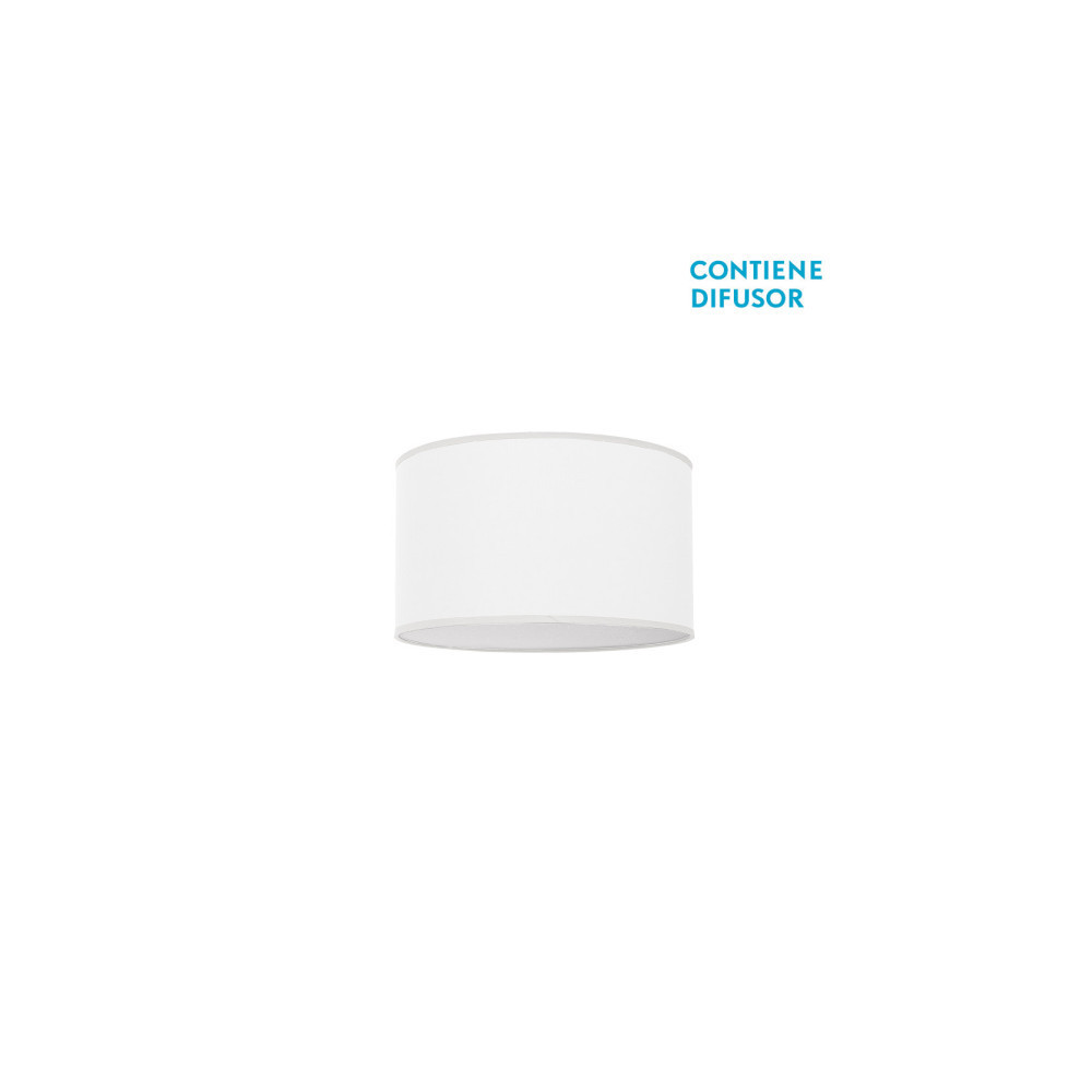 Plafón de la serie NICOLE en color BLANCO. Realizado en metal, policarbonato y material textil. Posee dos porta lámparas E27. Bombillas no incluidas. Viene con DIFUSOR INCLUIDO. De dimensiones 14x30x30 centímetros.