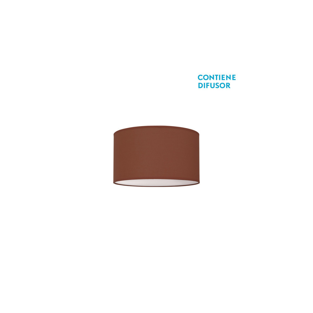 Plafón de la serie NICOLE en color marrón CHOCOLATE. Realizado en metal, policarbonato y material textil. Posee dos porta lámparas E27. Bombillas no incluidas. Viene con DIFUSOR INCLUIDO. De dimensiones 14x30x30 centímetros.