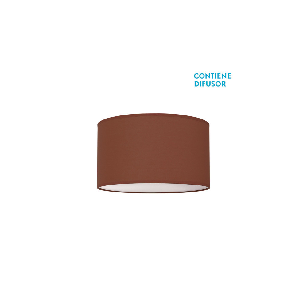 Plafón de la serie NICOLE en marrón CHOCOLATE. Realizado en metal y material textil. Posee tres porta lámparas E27, métrica 10. Bombillas no incluidas. Con una dimensión de 14x40x40 centímetros. Viene con su DIFUSOR INCLUIDO.