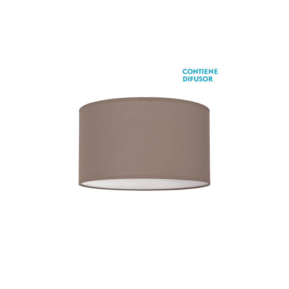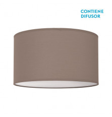 Plafón de la serie NICOLE en color marrón TOPO. Realizado en metal y material textil. Posee cuatro porta lámparas E27, métrica 10. Bombillas no incluidas. Con una dimensión de 16x50x50 centímetros. Viene con su DIFUSOR INCLUIDO.