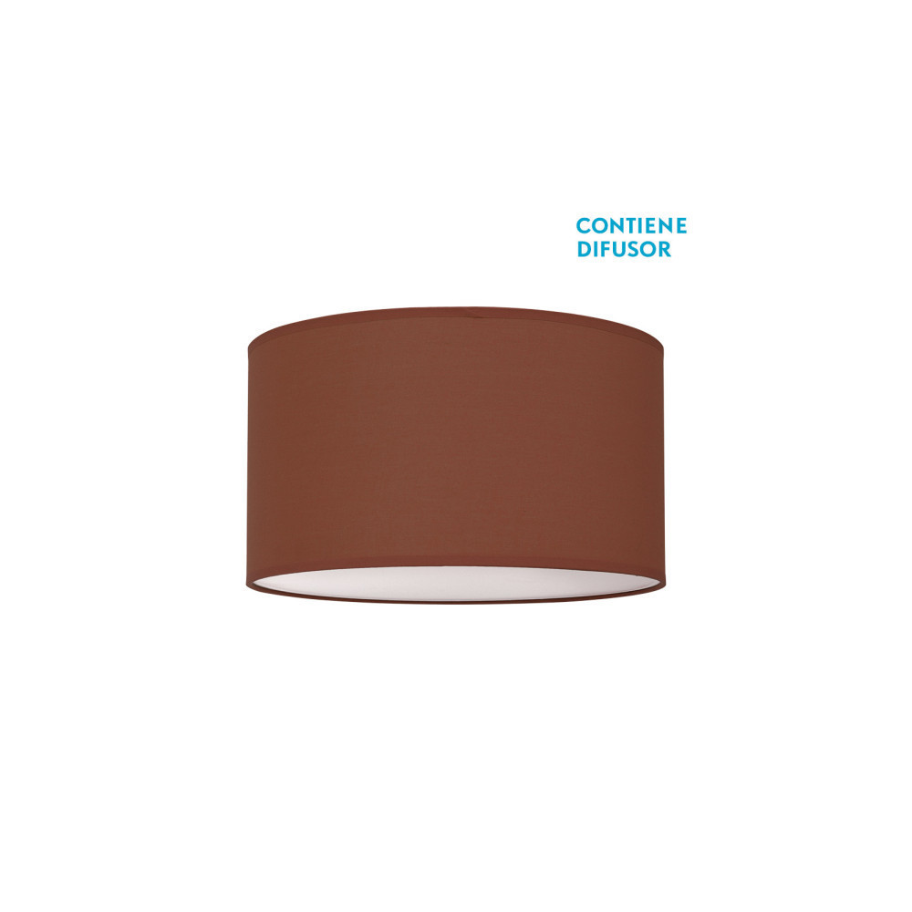 Plafón de la serie NICOLE en color marrón CHOCOLATE. Realizado en metal y material textil. Posee cuatro porta lámparas E27, métrica 10. Bombillas no incluidas. Con una dimensión de 16x50x50 centímetros. Viene con su DIFUSOR INCLUIDO.