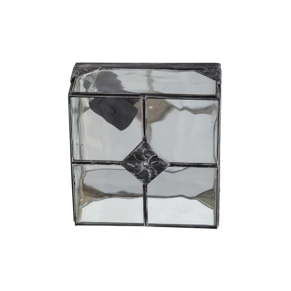 Plafón Pequeño de la serie ESTEPA fabricado en metal color plata envejecida y cristal rugoso. Tiene unas dimensiones de 11x20x20 centímetros y un peso neto de 1200 gramos. Posee un porta lámparas E27, bombilla no incluida. En esta serie podemos encontrar el colgante, el aplique y dos tamaños de plafones, todos en color plata, oro y cobre.