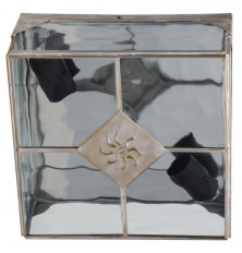 Plafón Grande de la serie ESTEPA fabricado en metal color oro y cristal rugoso. Tiene unas dimensiones de 11x25x25 centímetros y un peso neto de 1770 gramos. Posee dos porta lámparas E27, bombillas no incluidas. En esta serie podemos encontrar el colgante, el aplique y dos tamaños de plafones, todos en color plata, oro y cobre.