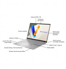 Fino. Ligero. Perfecto.El ASUS Vivobook S 14 OLED redefine tu experiencia con un portátil integrando a la perfección tecnología avanzada con un diseño minimalista. Su procesador AMD Ryzen™ proporciona hasta 50 W de TDP para garantizar el máximo rendimiento, e incluye además un acelerador por IA AMD Ryzen™ y una tecla de activación de Copilot en 1 segundo, que optimiza de forma inteligente las cargas de trabajo. Además, es increíblemente fino, desde solo 1,39 cm, y pesa 1,3 kg. Tiene 14 horas de autonomía de la batería y una impresionante pantalla ASUS Lumina OLED de hasta 3K. Este portátil está diseñado para satisfacer tus necesidades diarias. Además, incorpora un teclado ergonómico con retroiluminación RGB, un panel táctil extragrande y una cámara ASUS AiSense. Es tu compañero ideal para la vida actual.