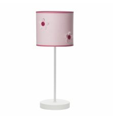 Sobremesa serie Botón en color rosa. Sus dimensiones son 45X16X16. Realizado en material textil, con un portalámparas E14. Ideal para dormitorios infantiles. puede completar la serie con el colgante del mismo color.