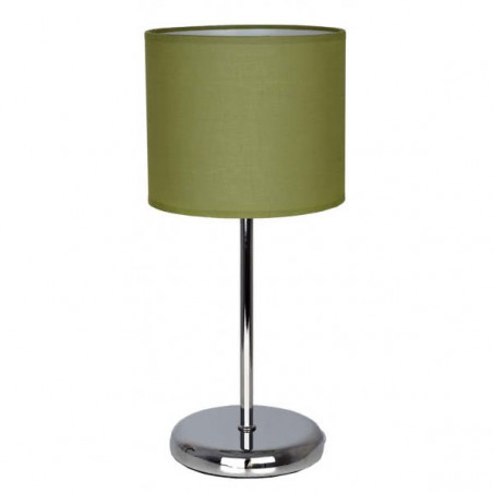 Sobremesa serie ADRIATICO con cuerpo en metal cromado y pantalla de tela color verde. Con portalámparas E14, tiene unas medidas de 37x17x17 centímetros y un peso neto de 770 gramos.