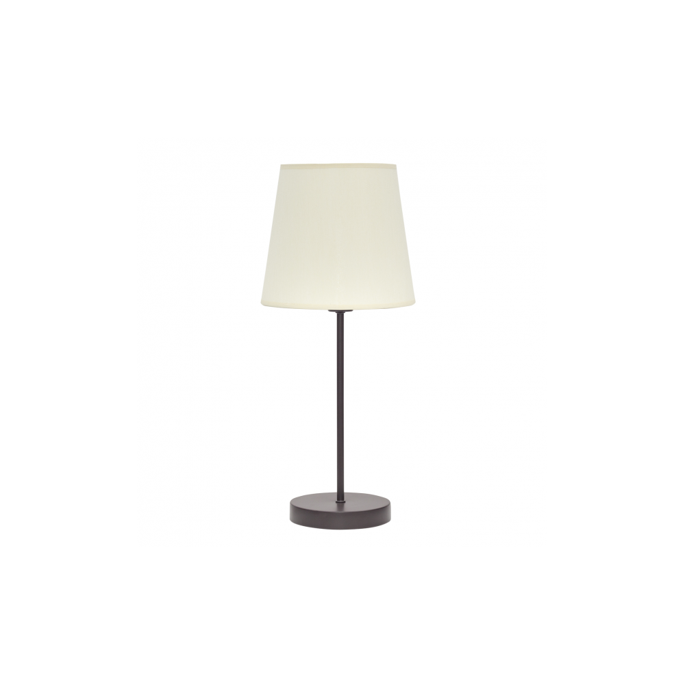 Sobremesa de la serie MALDIVAS en color MARRON/BEIS. Realizado en textil y metal. Posee un porta lámparas E14. Bombilla no incluida. Tiene unas dimensiones de 46x20x20 centímetros. En esta serie encontramos pie de salón, sobremesa y colgantes de 40 cm y 35 cm de diámetro, todos con combinaciones de colores con metales de color cromo, níquel, marrón, cuero y blanco, para elegir la que mejor se adapte a su decoración.