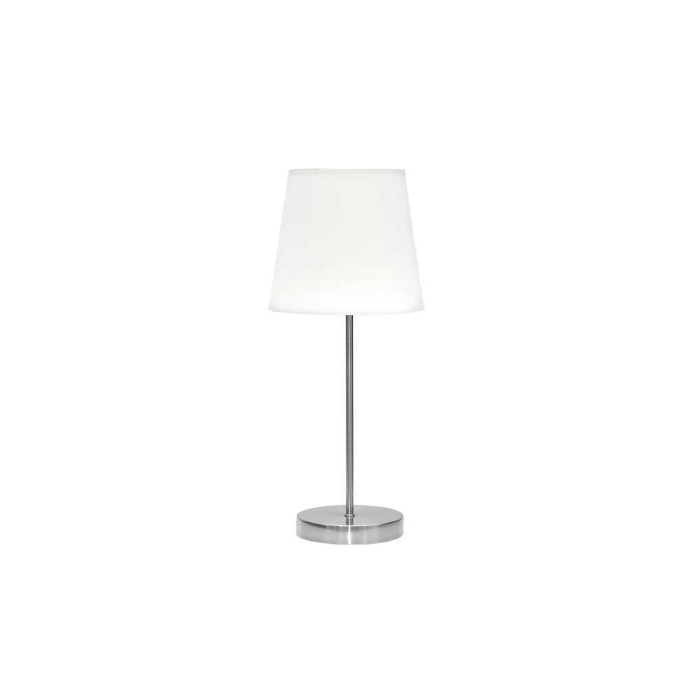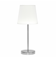 Sobremesa de la serie MALDIVAS en color NIQUEL/BLANCO. Realizado en textil y metal. Posee un porta lámparas E14. Bombilla no incluida. Tiene unas dimensiones de 46x20x20 centímetros. En esta serie encontramos pie de salón, sobremesa y colgantes de 40 cm y 35 cm de diámetro, todos con combinaciones de colores con metales de color cromo, níquel, marrón, cuero y blanco, para elegir la que mejor se adapte a su decoración.