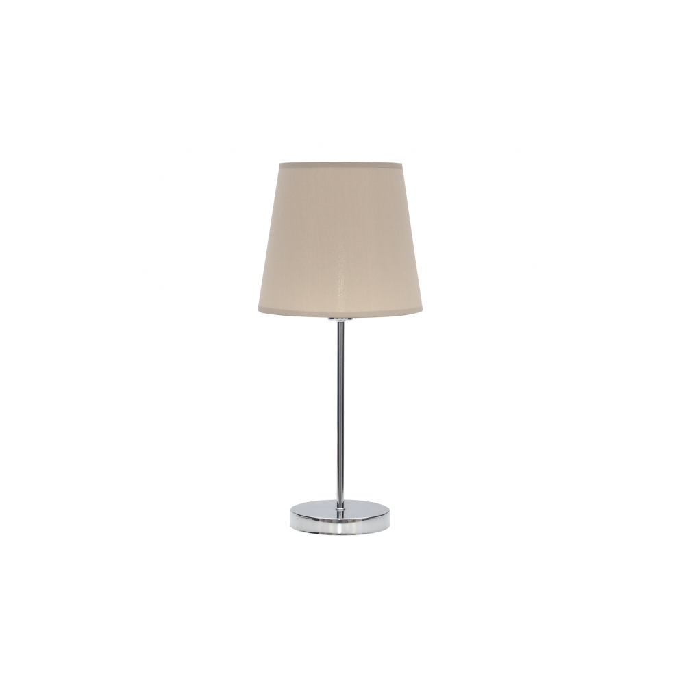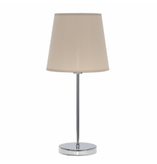 Sobremesa de la serie MALDIVAS en color CROMO/PIEDRA. Realizado en textil y metal. Posee un porta lámparas E14. Bombilla no incluida. Tiene unas dimensiones de 46x20x20 centímetros. En esta serie encontramos pie de salón, sobremesa y colgantes de 40 cm y 35 cm de diámetro, todos con combinaciones de colores con metales de color cromo, níquel, marrón, cuero y blanco, para elegir la que mejor se adapte a su decoración.