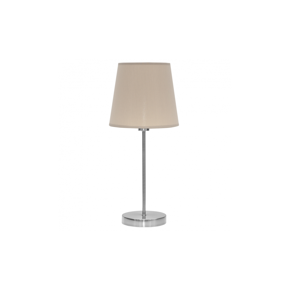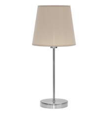Sobremesa de la serie MALDIVAS en color NIQUEL/PIEDRA. Realizado en textil y metal. Posee un porta lámparas E14. Bombilla no incluida. Tiene unas dimensiones de 46x20x20 centímetros. En esta serie encontramos pie de salón, sobremesa y colgantes de 40 cm y 35 cm de diámetro, todos con combinaciones de colores con metales de color cromo, níquel, marrón, cuero y blanco, para elegir la que mejor se adapte a su decoración.